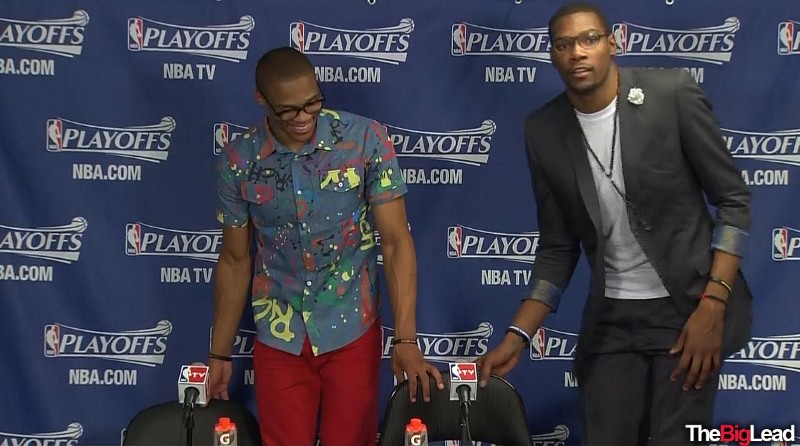“Durant seems to be taking his lead from a former teammate — now rival — Russell Westbrook, who’s really the model for athlete trying to expand their personal brand’s through fashion, as seen by Sports Illustrated having Russ on top of their most fashionable athletes list,” said sports media relations consultant Zack Smith, who’s worked with Nike’s Jordan Brand. “When you think about it, most on-camera interviews are all shot above the shoulder. We’ve seen logo placement get higher and higher in response to that, from the chest to the collar to, now, something that’s literally in the eye-line of the fan and consumer.”