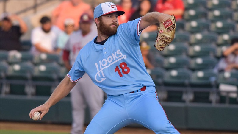 One of those projects between Brandiose and the Hooks was their “FauxBack” promo, when Klein and White helped reimagine what the Hooks’ unis would look like had they been playing in 1976. The look was so well received, Corpus Christi has brought the FauxBack jerseys into the fold, wearing them every Friday night and offering merchandise for fans.