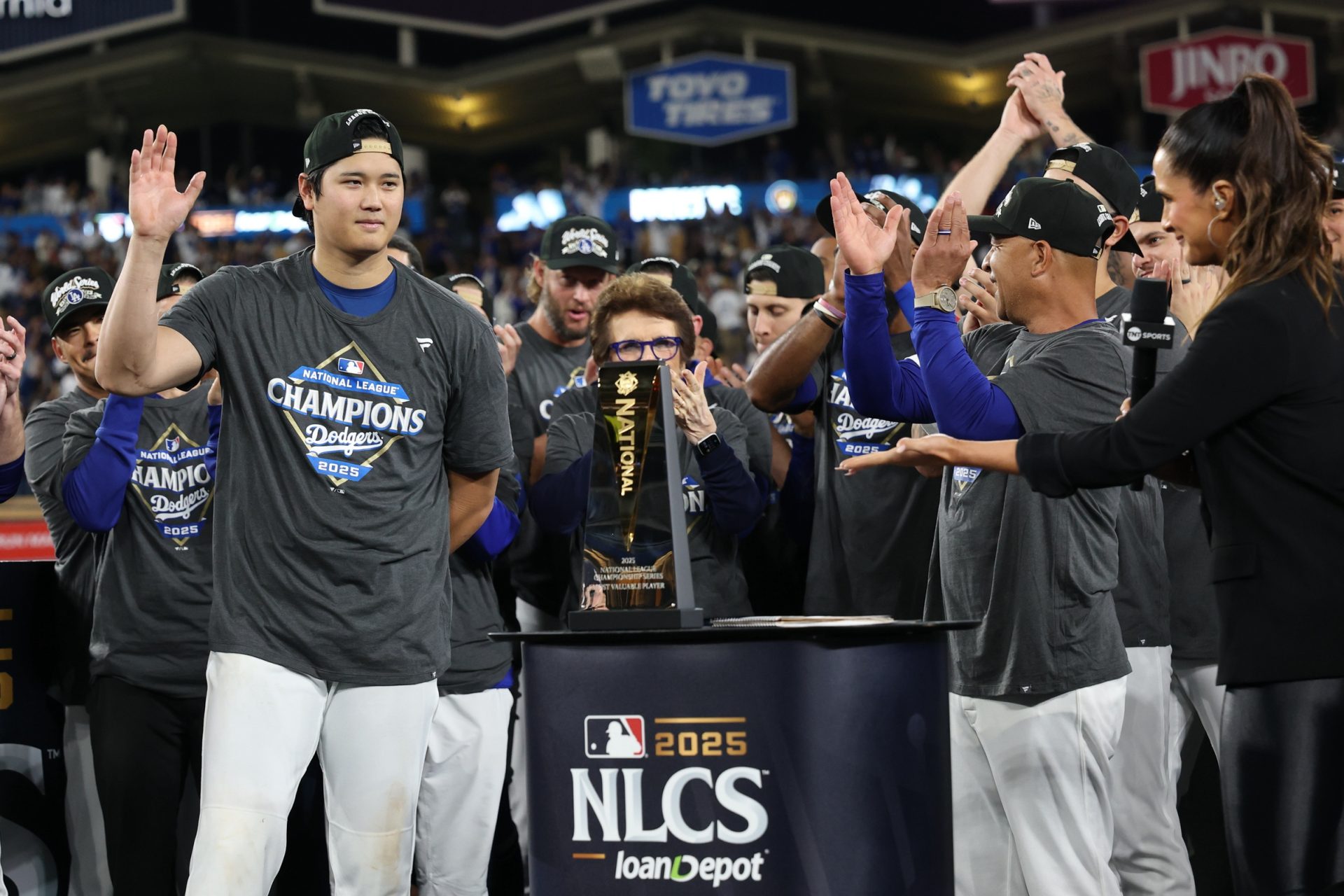 “I tell you, before the season started, they said, ‘The Dodgers are ruining baseball,’” Roberts said during the NLCS trophy ceremony. “Let’s get four more wins and really ruin baseball.”