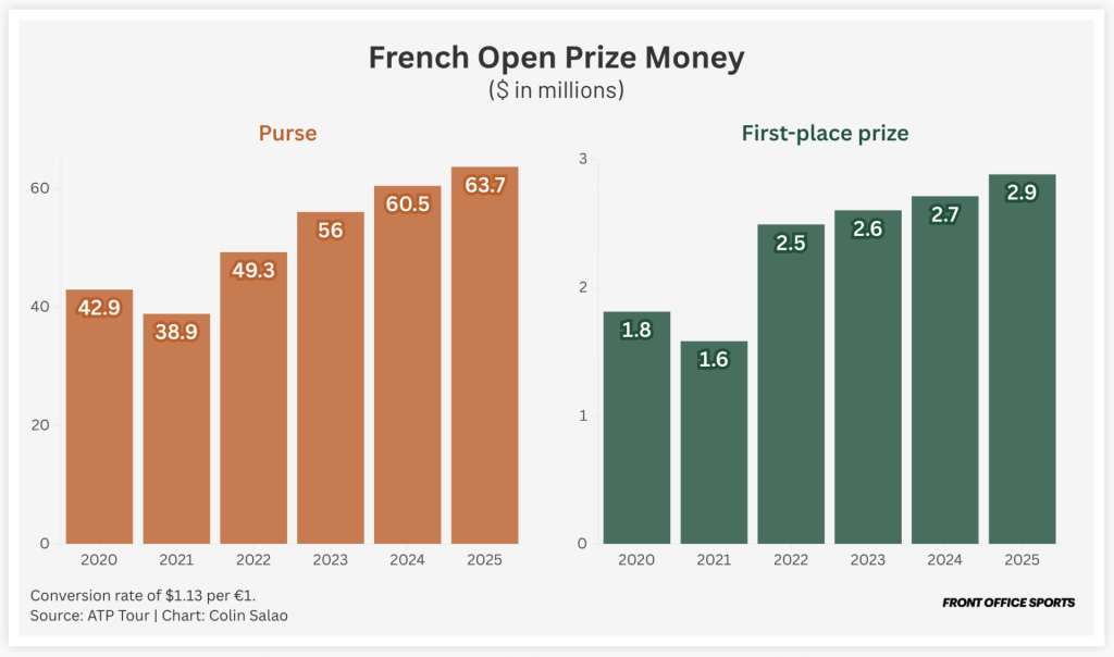 French Open Raises Purse to Record  $63.7M, $2.9M First-Place Prize