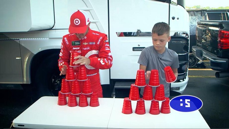 · Week Two: Cup Stacking — Driver: Kyle Larson — Kids attempted to stack 10 plastic cups pyramid style and break them all down as quickly as possible. The goal? Beat Larson’s time of 7.6 seconds.