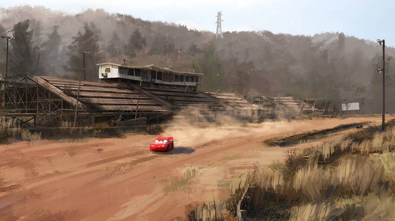“We were looking for a track that was functional in NASCAR, was used for a long time and then just stopped,” Cars 3 Creative Director Jay Ward explained. “It didn’t get turned into a parking lot or a swap meet. It’s just as it was, and the weeds kind of grew up around it.”