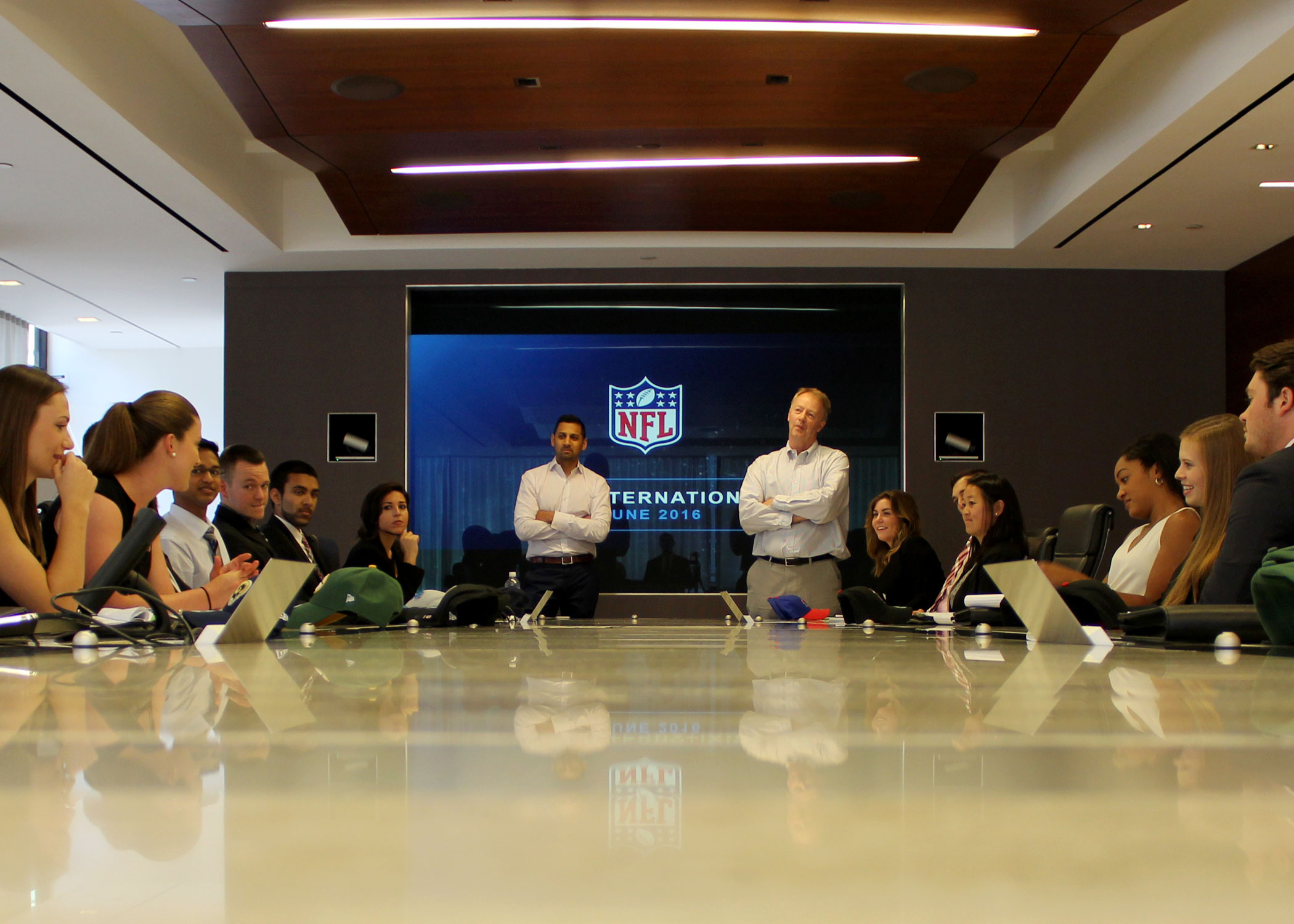 NFL execs address MSBA participants during a presentation in the league’s New York City headquarters (Photo via MSBA)