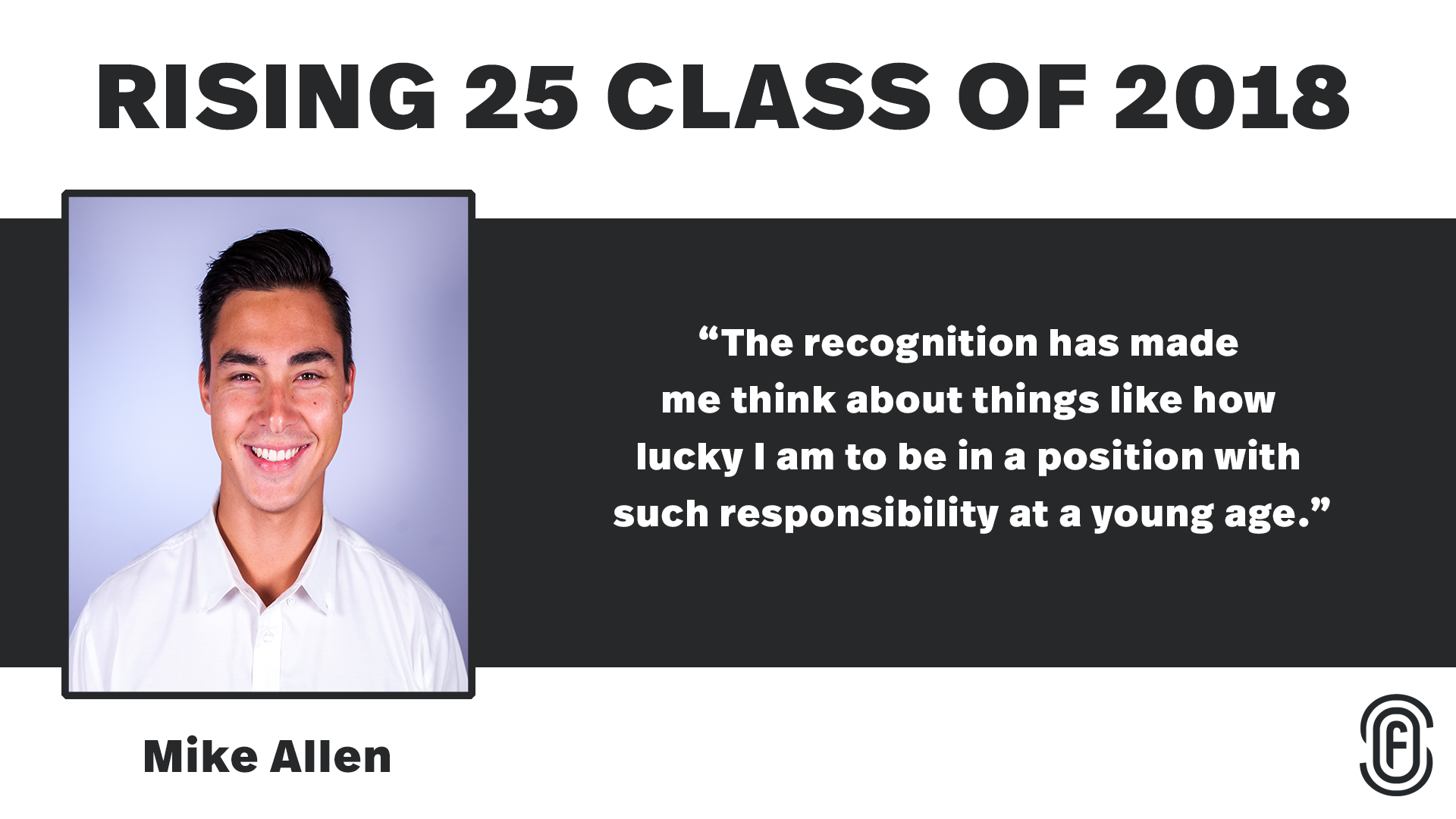 I’m grateful to the Front Office Sports team, because winning the Rising 25 Award has forced me to stop for a second and take stock of my present, past, and future. The recognition has made me think about things like how lucky I am to be in a position with such responsibility at a young age, the unique experiences my job affords me, the people whose support has helped me along the way, and the many possibilities that lie ahead. I’m grateful to share this award with my team and family, especially my wife and daughter.