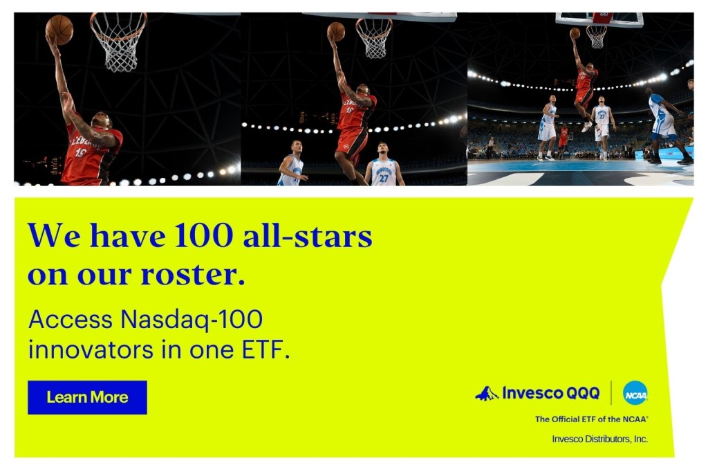 The Nasdaq-100 Index® includes the 100 largest non-financial companies listed on the Nasdaq. An investment cannot be made directly into an index. NCAA is a trademark of the National Collegiate Athletic Association. Invesco is not affiliated with the NCAA.