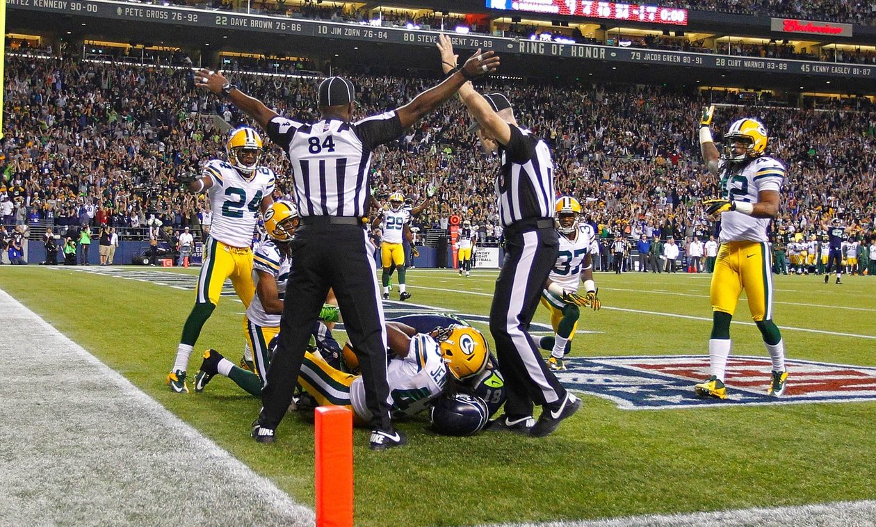 Most notably, that period included the infamous “Fail Mary” game in which a Week 3 contest on Monday Night Football between the Packers and Seahawks ended in a Seattle game-winning touchdown that the league later conceded involved an uncalled offensive pass interference penalty. Had that penalty been called, it would have ended the contest in a Green Bay victory. Instead, the Seahawks’ touchdown also included two referees standing right next to each other, making opposing calls on the play.