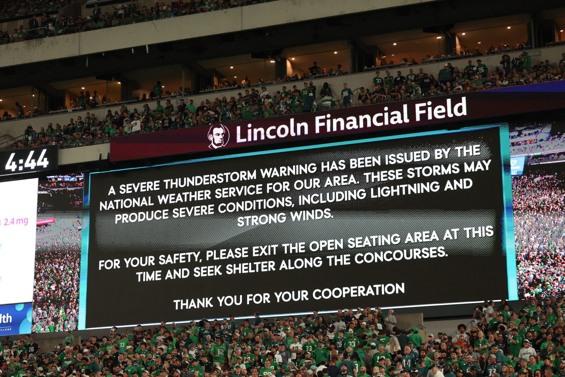 The delay in the Cowboys-Eagles game comparatively happened much later, arriving in the third quarter. When play resumed at 11:30 p.m. ET, however, the crowd at Lincoln Financial Field in Philadelphia had thinned considerably, and even more so when the game finally ended at 12:18 a.m. on Friday.