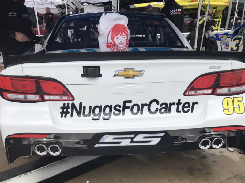 This out-pour caught the attention of Concord, NC based NASCAR team Leavine Family Racing. LFR’s Michael McDowell will sport the #NuggsForCarter hashtag on the rear bumper — for free. Free sponsorship is not typically in NASCAR’s vocabulary, but McDowell and the № 95 team just wanted to help him out.