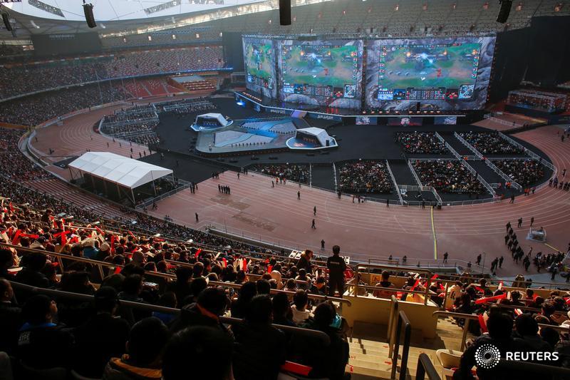 People watch the League of Legends 2017 World Championships Grand Final esports match between Samsung Galaxy and SK Telecom T1 at the Beijing National Stadium in Beijing, China, November 4, 2017. Picture taken November 4, 2017. REUTERS/Thomas Peter TPX IMAGES OF THE DAY – RC1CAEE1C340