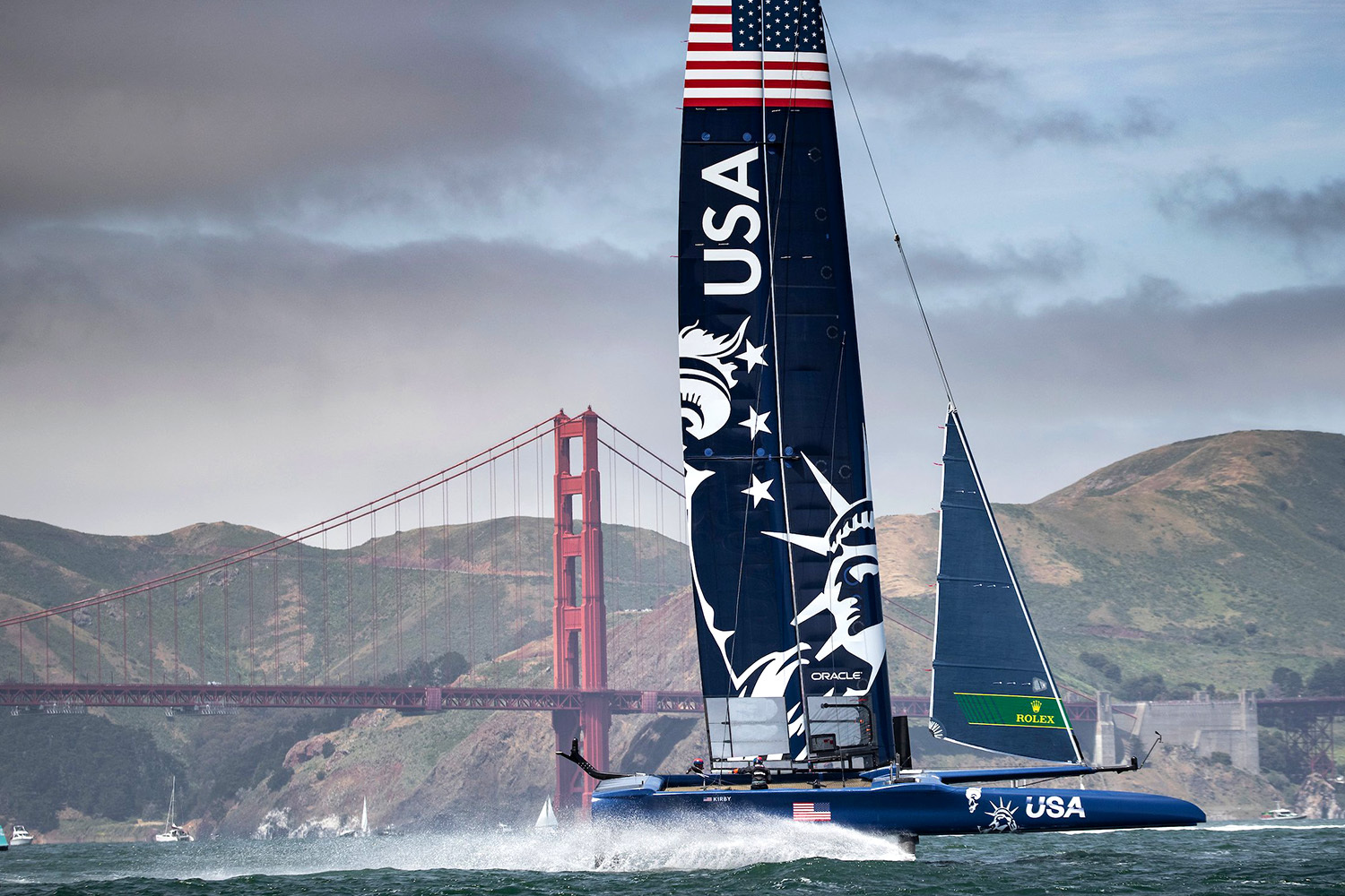 Thompson told me this in March while watching several 50-foot-long F50 foiling catamarans get craned out to the choppy San Francisco Bay waters from SailGP’s base at Pier 96.