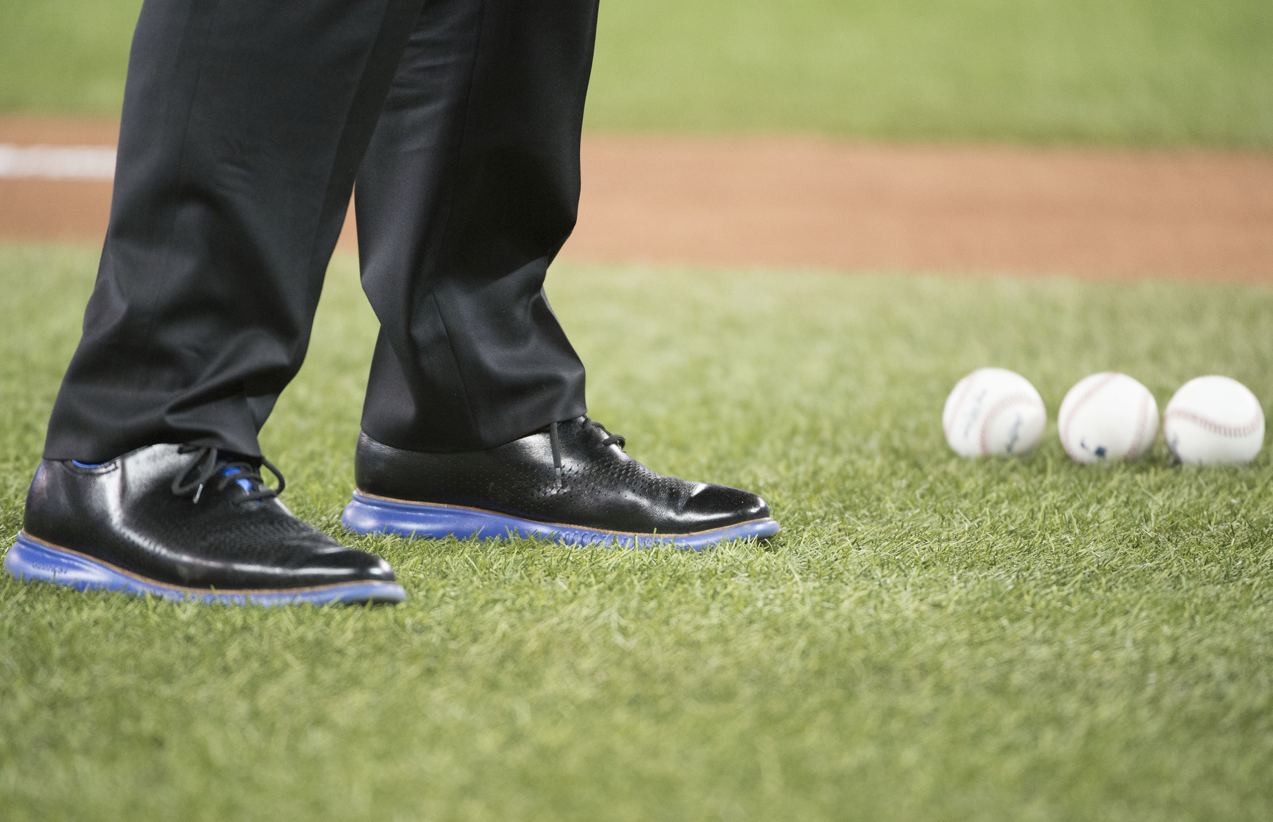 Aug 9, 2018; Toronto, Ontario, CAN; Toronto Blue Jays Sportsnet sportscaster Buck Martinez shoes during batting practice against the Boston Red Sox at Rogers Centre. Mandatory Credit: Nick Turchiaro-USA TODAY Sports