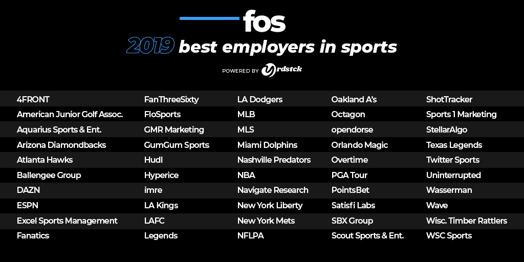 Below you will find the list of the 2019 Best Employers in Sports. Congrats to all of the winners!