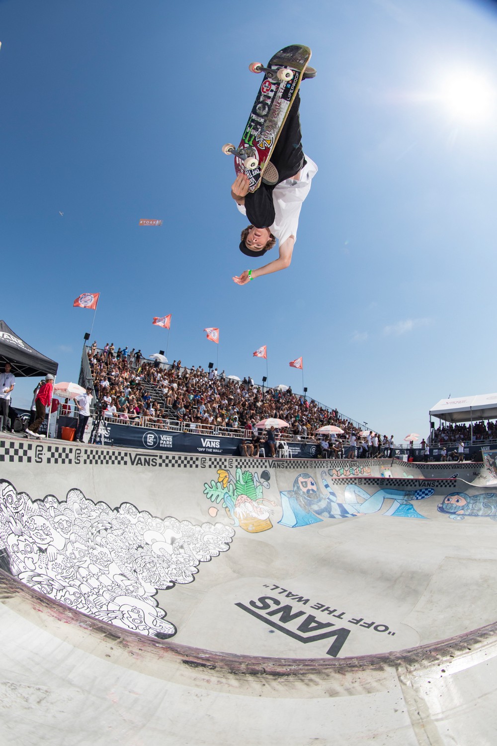 The Vans Park Series drew a big crowd as well over at the concrete bowl stadium. Skateboarding and surfing are synonymous with Southern California, and it was no surprise seeing fans enjoying both. 17-year-old Tom Schaar from Malibu, CA took top honors with big aerial tricks.