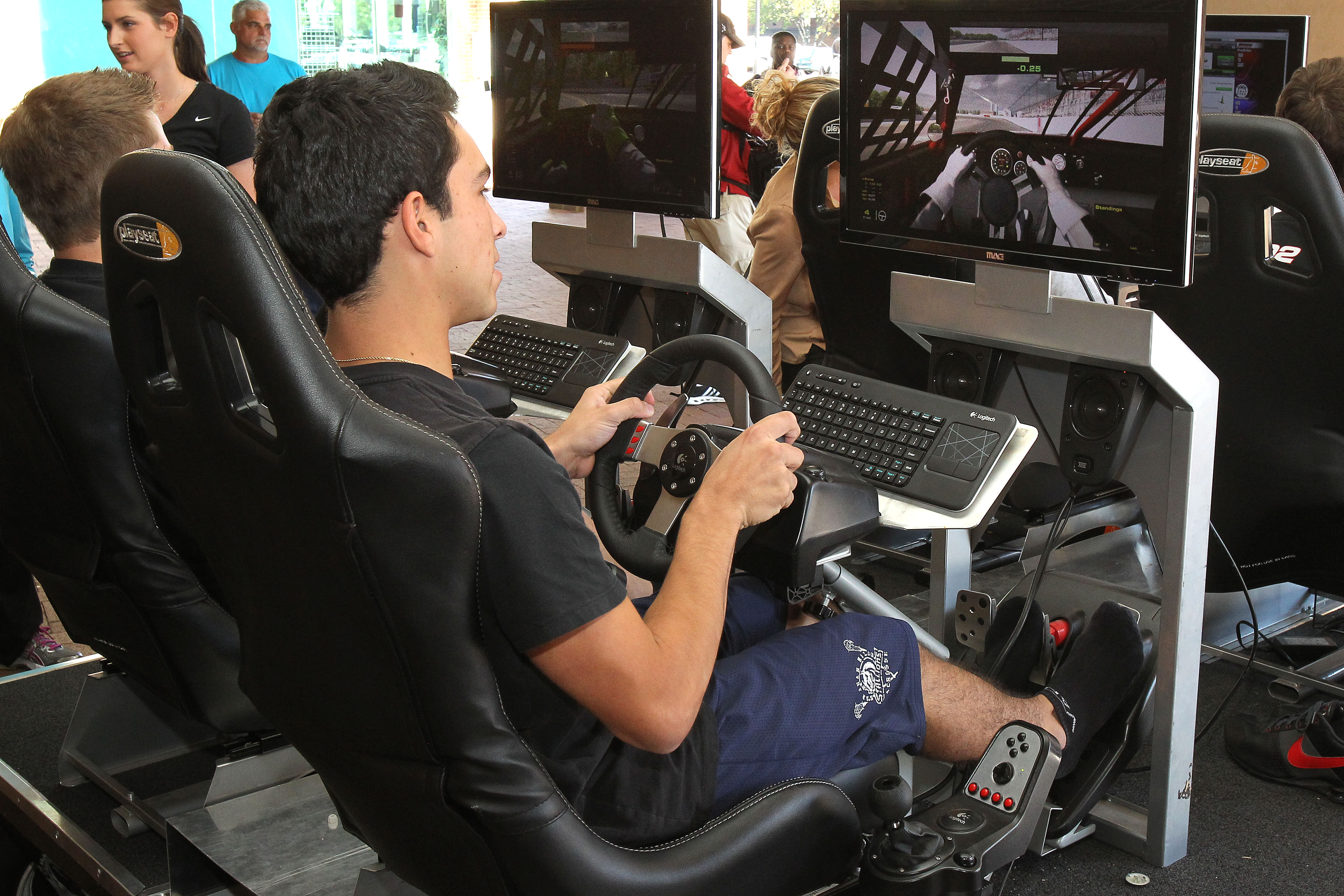 Jack Madrid of San Clemente, California, takes a turn on the IRacing simulator during the NASCAR Drive For Diversity Combine at Hampton University in October of 2012. (Photo by Tom Whitmore/Getty Images for NASCAR)